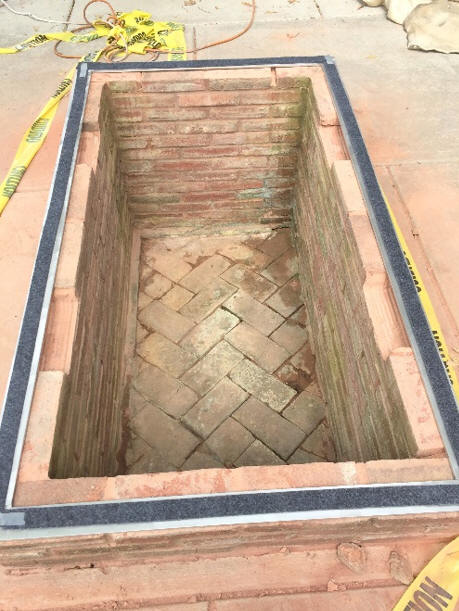 the depth of the bricks below the present concrete walk.