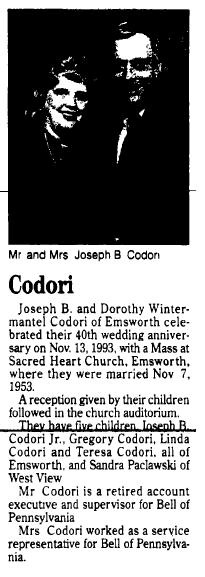 Joe Codori Sr. Family of Pittsburgh, Pa.
