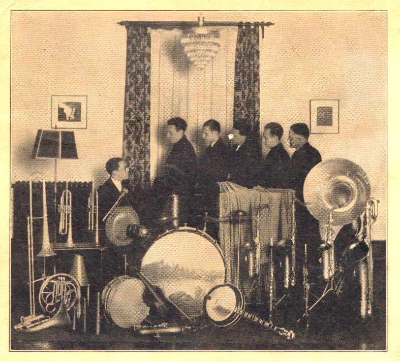L to R: S. Wellitt (drummer), Pete Rogers (turupet), Harry Marsh (bass), R.